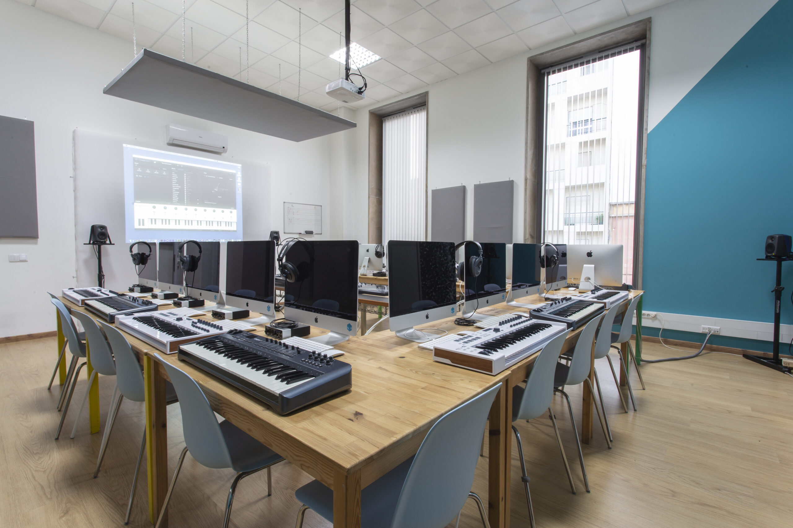 A formação em Som e Música acontece em espaços profissionais únicos no Algarve, criados para te pôr no centro da ação. Tens acesso a uma sala de aula moderna e com tecnologia de som de última geração, disponível tanto para as aulas como para os teus projetos pessoais.